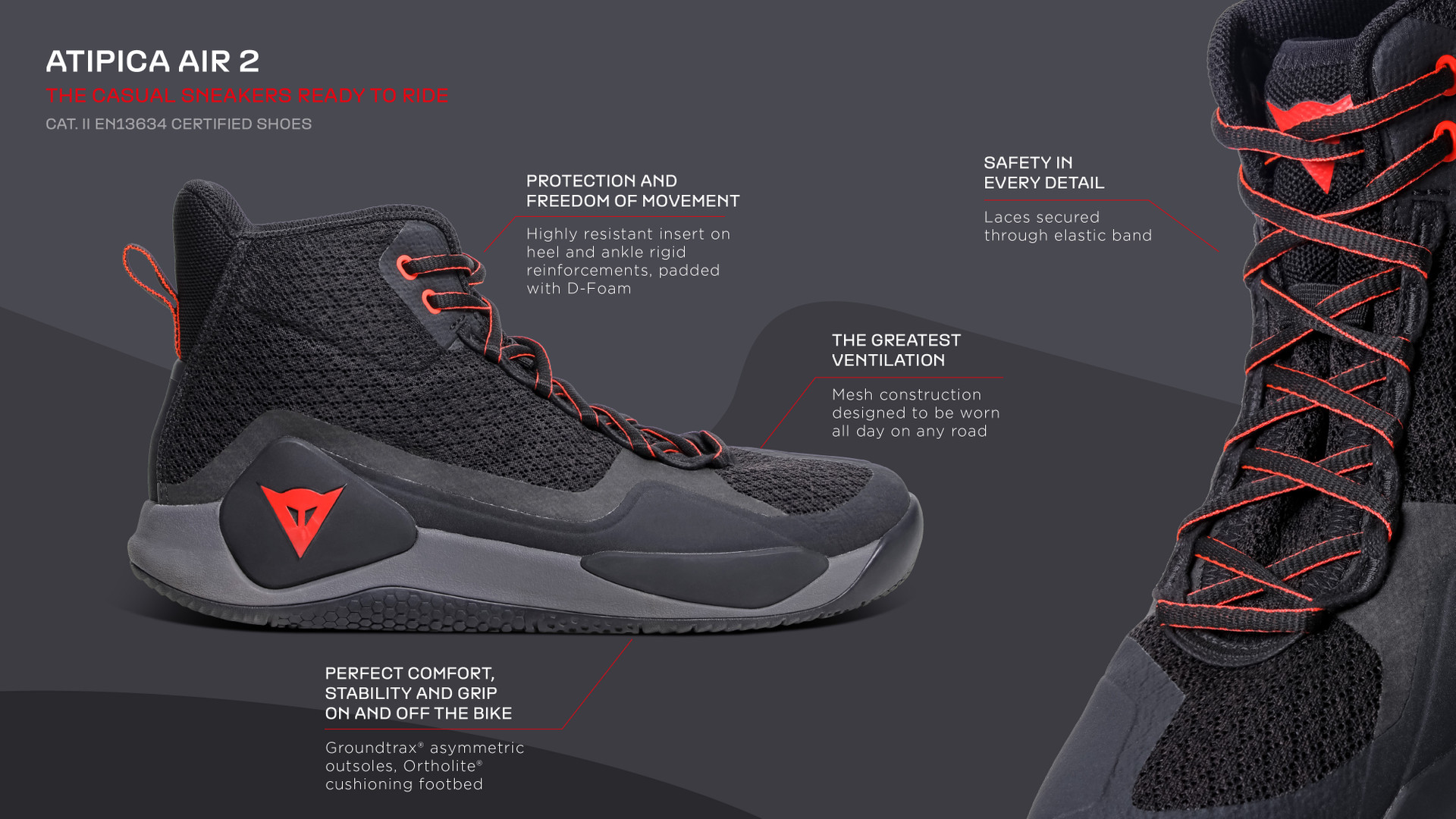 Atipica Air 2 are the certified motorcycle shoes that guarantee maximum comfort, both when riding and when walking, for everyday use in any urban setting.