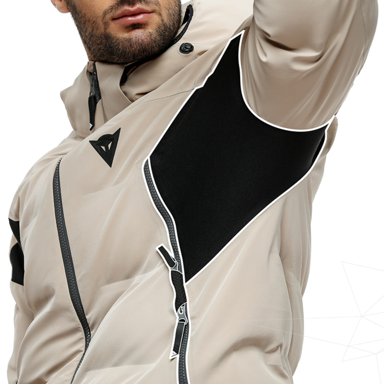 The Ski Downjackets are an iconic part of the Dainese collection, designed to maximize thermal insulation and ensure superior comfort in all weather conditions. The SKI DOWNJACKET SPORT is constructed with a Dermizax® EV 20,000-mm, 20,000-g/m², 24h waterproof membrane, elastic in four directions. Thermal insulation is ensured with Primaloft® Silver Cross Core padding that, owing to the use of Aerogel – the world’s lightest solid, made up of 95% air – protects against even the coldest temperatures, while keeping weight and bulk to a minimum. The D-Dry® A+ stretch membrane under the arms allows maximum freedom of movement and breathability during every phase of activity, leaving the most mobile area of the torso free of padding. Large, adjustable zippered air vents on the chest allow plenty of ventilation on hot days, and can be used as storage pockets owing to their double garage structure. A compact fixed hood, internal waist gaiters and snow cuffs inside the sleeves round out the details of a garment designed to suit all conditions.