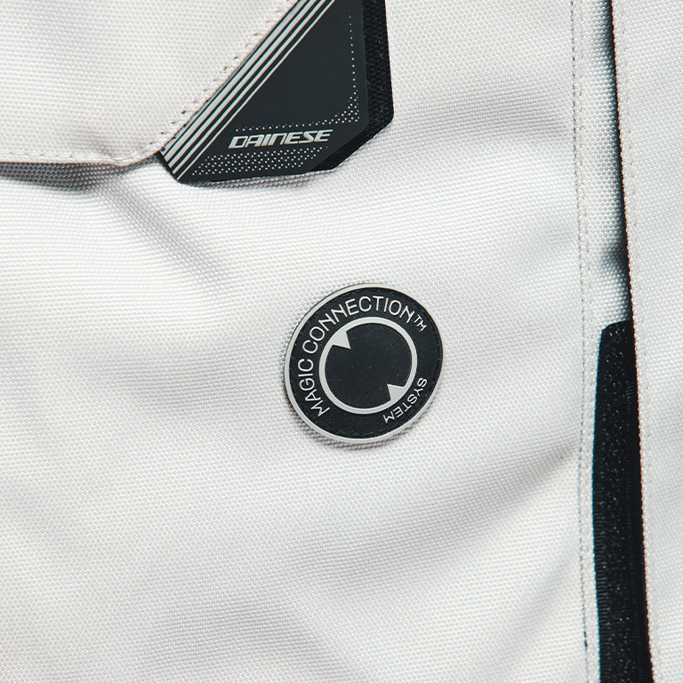 Dainese Magic Connection™ technology features a magnetic system that allows compatible Dainese gloves to be secured conveniently to the jacket, so they’re always to hand and don’t get lost when refueling or during short stops.