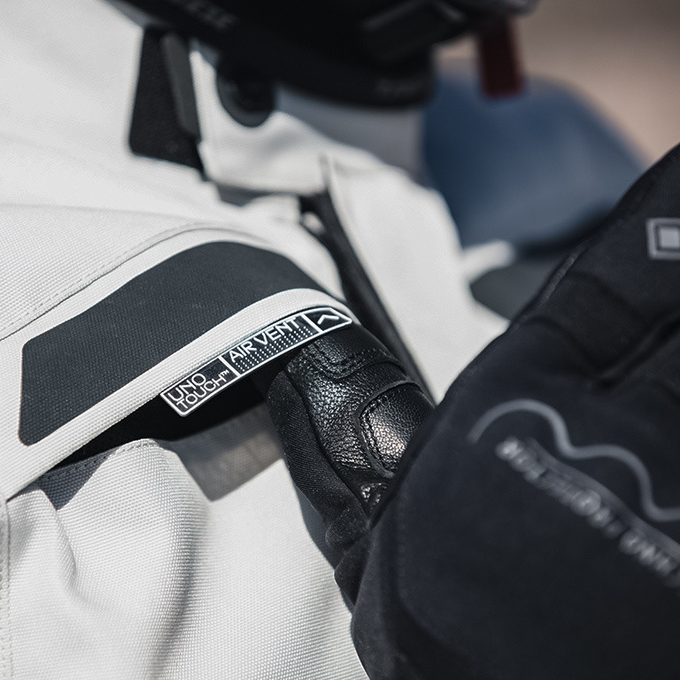 Maximum functionality and versatility for every route and climate are given by the three layers of which it is composed. Splugen 3L D-Dry® was created to guarantee comfort and safety in all seasons. The removable waterproof lining in D-Dry® fabric and the thermal layer protect against the coldest temperatures, while the ventilation, which can easily be opened with one hand using the Uno Touch™ Air Vent system, makes it suited to even the hottest days.