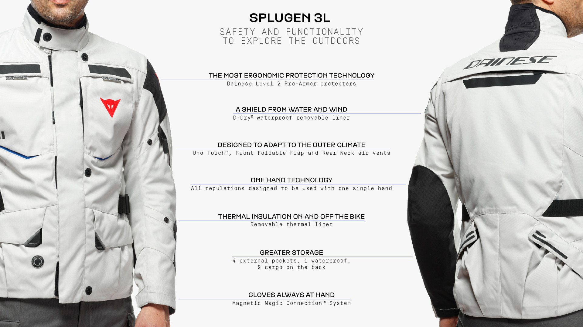SPLUGEN 3L D-DRY® JACKET is the Dainese motorcycle jacket designed for long road and off-road trips.